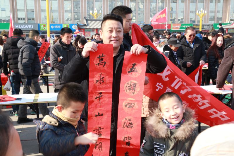 市民们情绪高涨,对这种书写的春联表现出了浓厚的兴趣。市民汪彦华说:“这样规模大的春联大会不仅有利于营造春节的氛围,而且手写的春联可以增加文化气息,不像印刷品那样呆板,在现场能够淘到自己喜欢的春联让人非常开心,还能够感受到文化氛围的熏陶。”市民吴女士带着女儿杨博贻小朋友特意前来参加春联书写大会,她表示这样的大型活动很有意义,让孩子写春联、送春联,不仅给孩子一个锻炼的平台,让孩子参与到社会活动中提升自信心,也让孩子了解到传统文化的魅力。