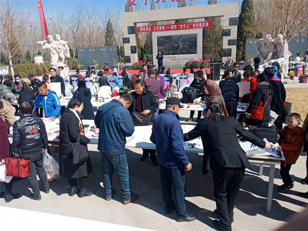 2019年3月31日,阳光明媚,春风拂面,上午九点,松鹤陵园支宁人广场一改往日的宁静,由银川松鹤陵园、银川市文联、银川市作家协会、宁夏老年书画家协会、宁夏塞外书画艺术研究会、银川黄河诗词学会、银川晚报、华兴时报、宁夏电视台影视频道等单位联合举办的"慎终追远、文化清明"一一缅怀支宁人诗书画活动拉开了帷幕!相关团队近200位艺术家参与了活动。