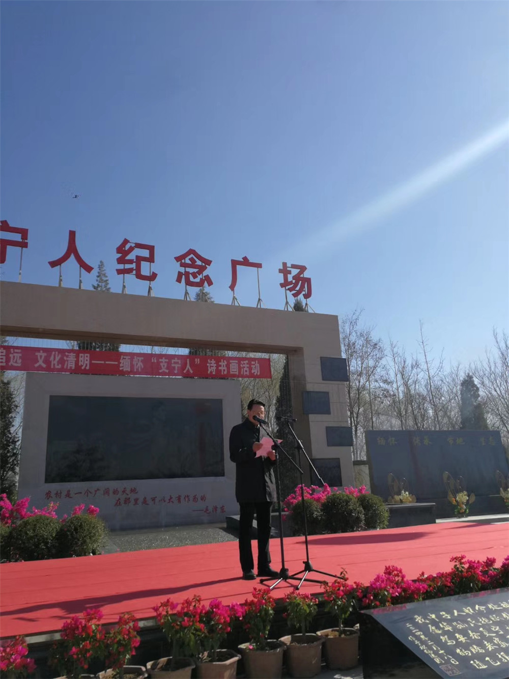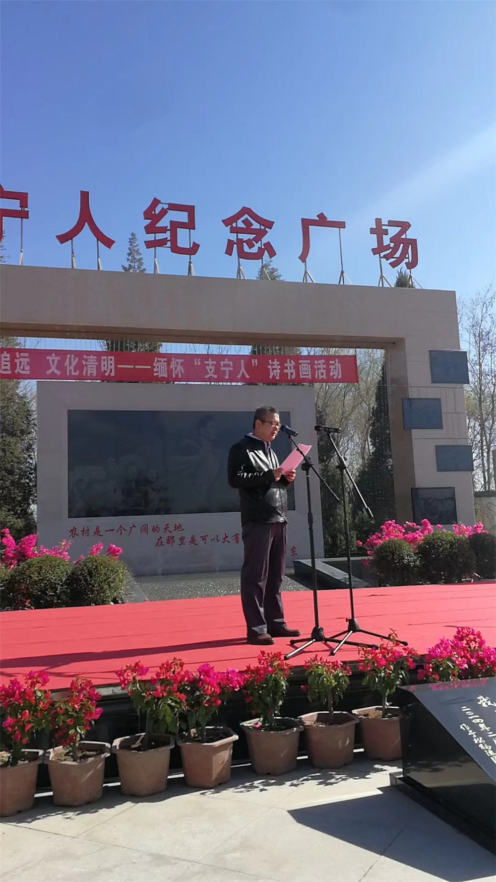 活动开幕式由银川市作协秘书长苏炳鹏主持。文联党组张秉东书记及松鹤陵园吴总经理致辞。参与活动的银川市文联及各协会代表还为已故的支宁人敬献了花篮。