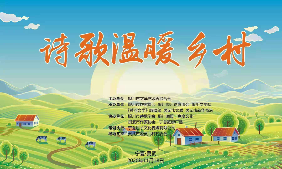 坚定文化自信,壮大文学创作队伍,把诗歌的种子埋在乡村里,开花结果,将更多优秀的诗歌作品推送到乡村,为乡土诗人搭建好更广阔的文学平台,鼓励他们创作出更多更优秀的诗歌作品,城市与乡村更好地面对面零距离对话,共同为我们民族地区的黄河情文学情怀的繁荣壮大而努力。由银川市文学艺术界联合会主办,银川市作家协会、银川市评论家协会、银川文学院、银川市《黄河文学》编辑部、灵武市文联、灵武市新华书店承办,灵武市作家协会、银川晚报“壹度文化”、宁夏旅游广播协办的“诗歌温暖乡村”诗会于11月18日在灵武市郝家桥镇泾灵北