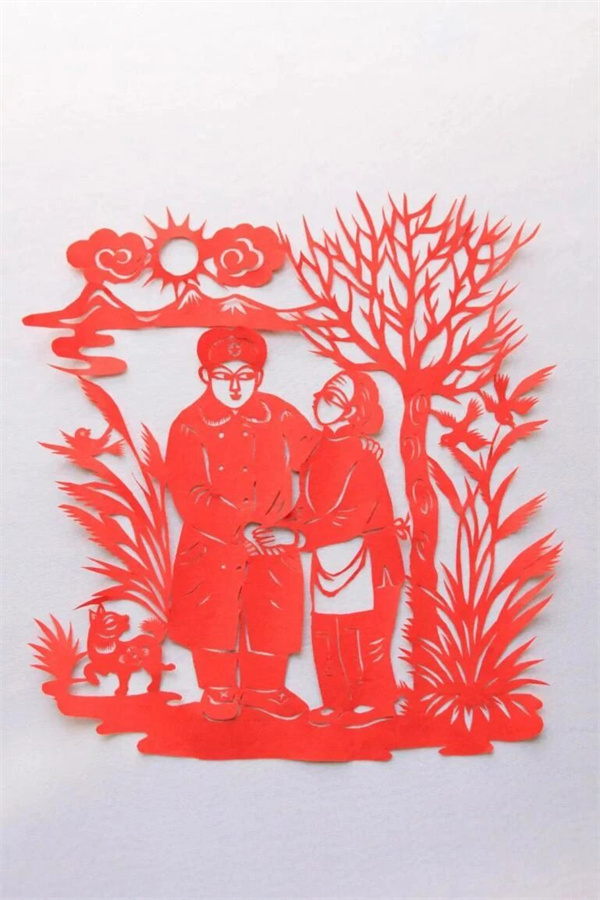 剪纸《军民一家人》作者:华月秀