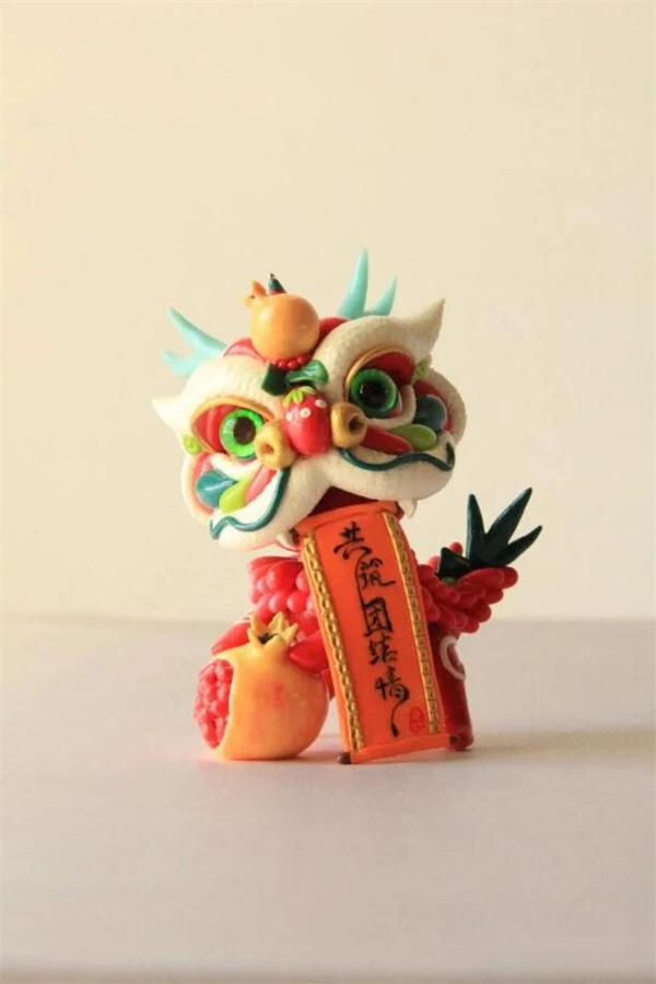 国潮面塑《龙狮吐福筑团结》作者:蔡小莉