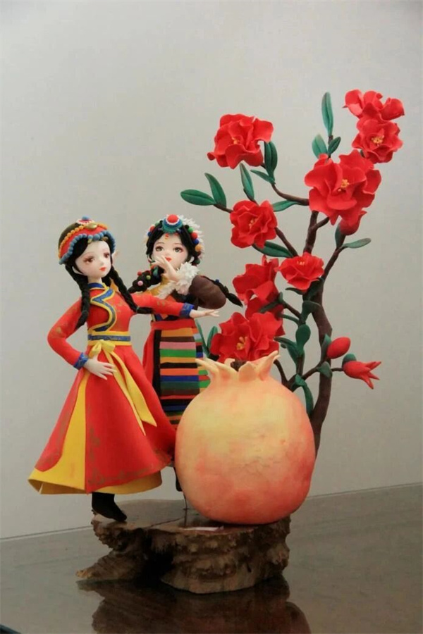 面塑《民族团结石榴红》作者:马静蕾