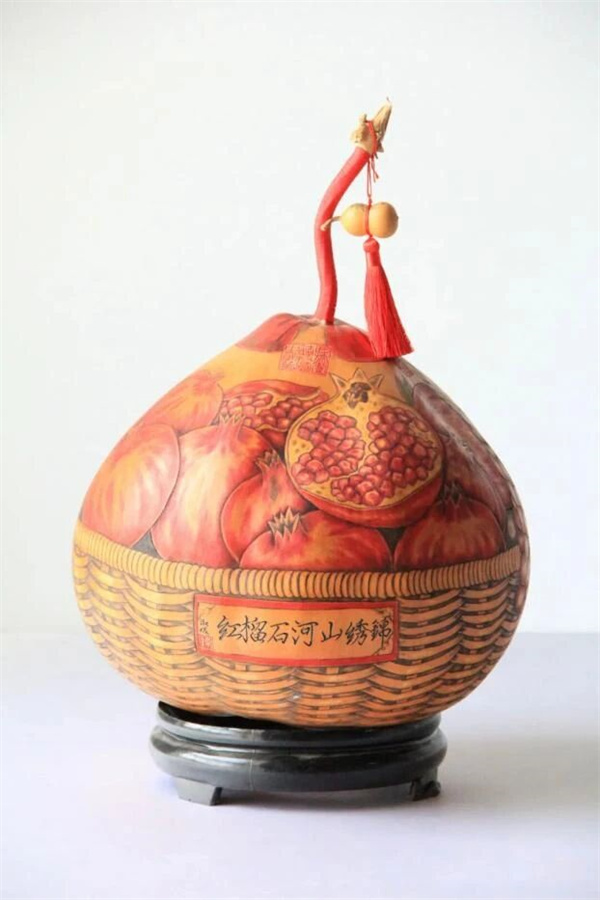 葫芦烙刻画《石榴花开 籽籽同心》 作者:李燕弟