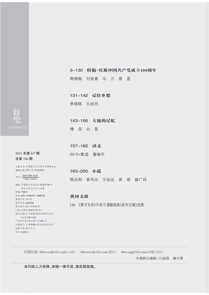 《黄河文学》2021年6/7期合刊目录