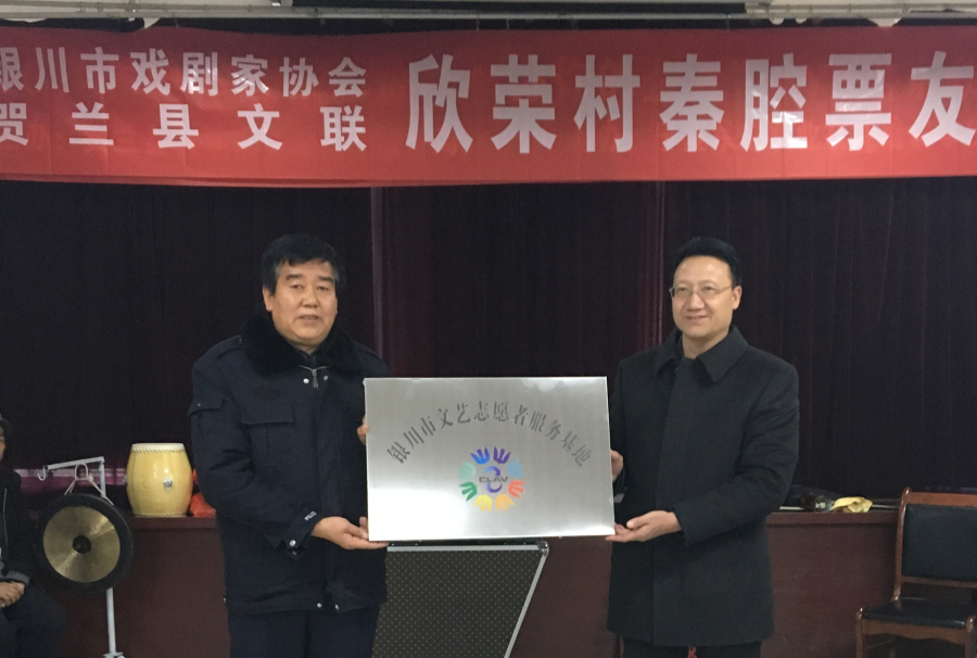 乡村秦腔票友会活动,市文联向欣荣村捐赠了乐器并将“银川市文艺志愿者服务基地”在欣荣村挂牌