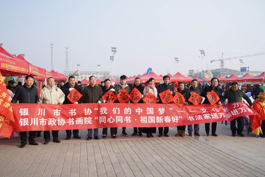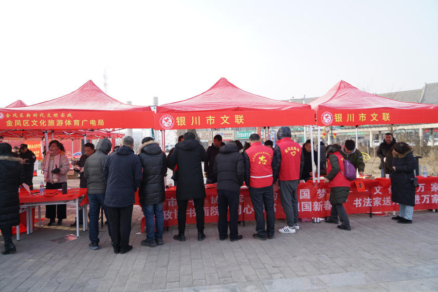 银川市文联秘书长李德超、协会部主任秦斌、书法家协会主席陈国鸿和13名书法志愿者一起参加了活动。