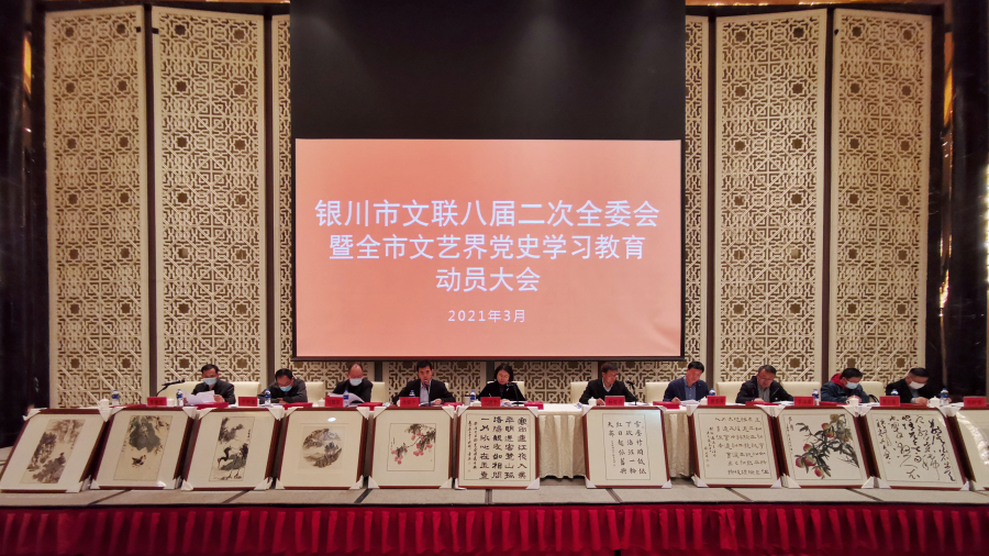 2021年3月11日,银川市文联八届二次全委会暨全市文艺界党史学习教育动员大会在银川召开。会议传达学习了区市两会精神和上级文联全委会精神,总结部署了年度工作,表彰了2020年度文联系统先进集体和个人,并对党史学习教育进行了动员。