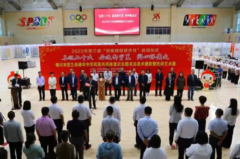 9月2日,宁夏贺兰县隆重举行2022年“民族团结进步月”启动仪式,“喜迎二十大 奋进新宁夏 同心跟党走”铸牢中华民族共同体意识主题书法美术摄影暨民间艺术展也同步开展。