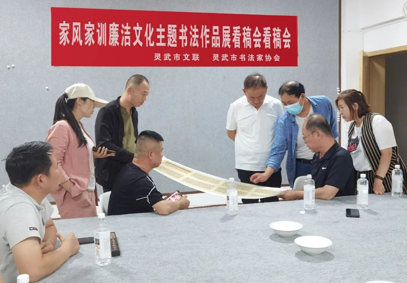 中华民族历来注重家庭、家教、家风,古语有云“天下之本在家”。弘扬传承中华优秀传统文化,进一步提高我市文艺创作水平,9月6日晚,灵武市文联、灵武市书协邀请银川市书协主席刘银安、副主席石虎麟对我市书协会员围绕 银川市“喜迎二十大·强国复兴有我”系列群众性文艺活动——家风家训廉洁文化主题书法作品(巡回)展的 创作作品进行看稿指导。