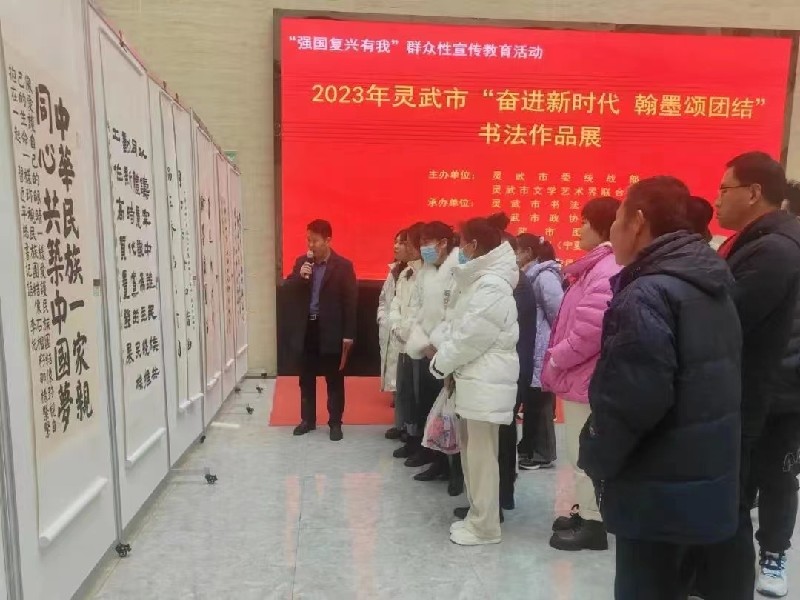 12月15日,由灵武市委统战部和灵武市文联主办的“奋进新时代 翰墨颂团结”灵武市铸牢中华民族共同体意识书法作品展在灵武市图书馆开展。