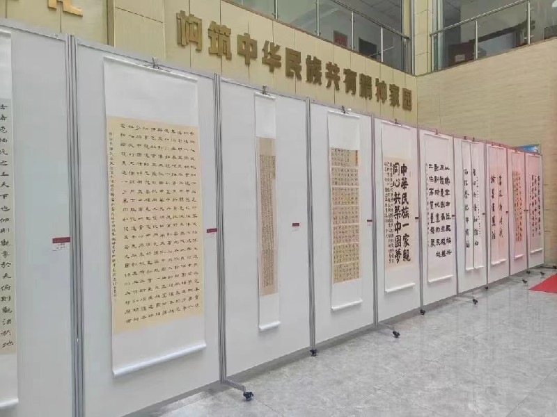 活动展厅里的书法作品风格多样,吸引了众多观众驻足观赏并拍照记录。本次书法作品展以“铸牢中华民族共同体意识”为创作主线,共展出书法作品50余幅。书法工作者和书法爱好者们用多样的创作手法,聚焦“奋进新时代 翰墨颂团结”主题,展现了各民族和睦相处、和衷共济、和谐发展的时代风貌,用有温度、有情怀的书法作品讲述了灵武民族团结进步故事。