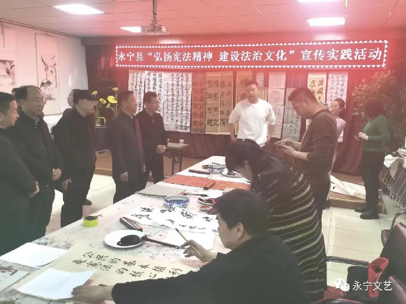 开展“你点单我派单”一对一文艺志愿服务活动。公布永宁县文联“一对一文艺志愿服务”菜单,根据群众需求提供精准文艺志愿服务。10月26日,根据永宁县城乡公共事业服务中心点单需求,为第十八个环卫工人节创作书法、美术作品40幅作为奖品对永宁县环卫工种评选的岗位标兵进行奖励。10月至11月期间,根据永宁县委组织部点单需求,承担了永宁县“致敬芳华 薪火相传”永宁县荣退仪式主题文艺演出策划和排练指导服务。11月20日根据永宁县委老干部局点单需求从永宁县文艺家作品中精选18幅书法、美术作品,为新落成的永宁县老年大学装点走廊,增添了浓郁文化艺术氛围。12月4日,根据永宁县司法局点单需求,开展了“弘扬宪法精神 建设社会主义法治文化”宣传实践活动,为永宁县司法局书写法治文化书法作品50余幅。