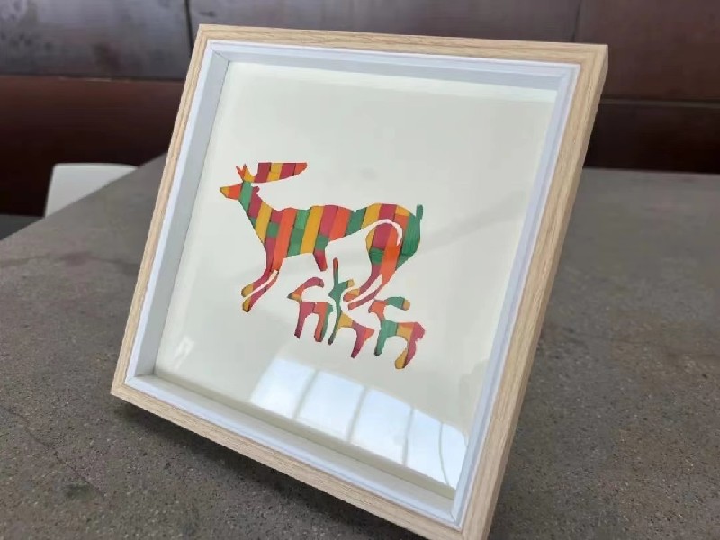 此次活动,文艺志愿者们将非遗竹编与贺兰山经典岩画及韩美林艺术作品元素相结合,将卡纸雕刻出岩画图案,用彩色的竹编作底,相互映衬,制作出一幅幅精美的竹编艺术作品。画面线条简练且富有动感,既古老传统,又现代时尚。