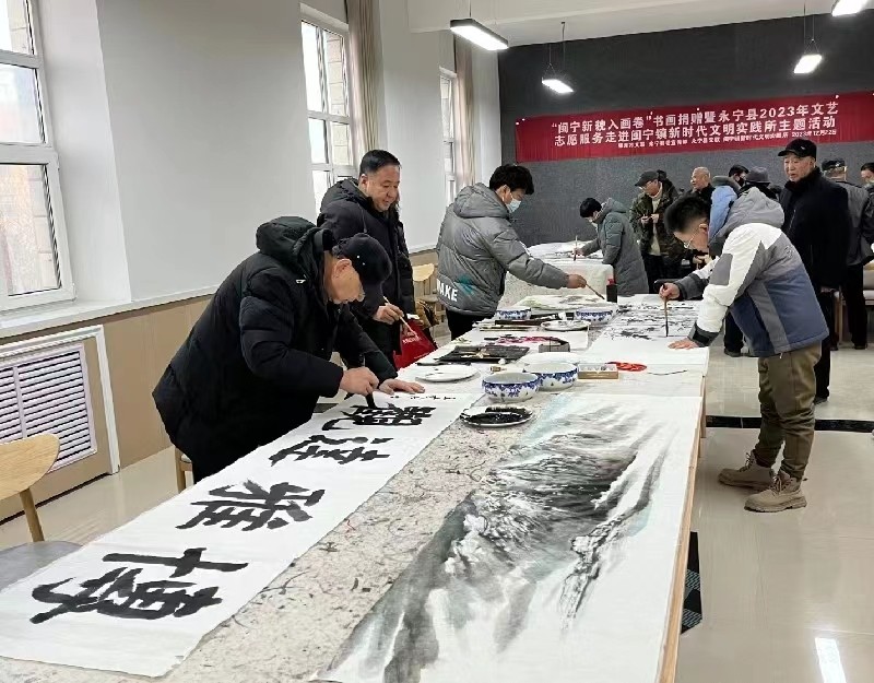 为丰富闽宁镇移民群众精神文化生活、涵育文明乡风、提振精神风貌,充分发挥新时代文明实践阵地宣传群众、教育群众、引领群众、服务群众的重要作用,12月22日,永宁县联合银川市委宣传部、银川市文联,组织市县文艺志愿服务队走进闽宁镇新时代文明实践所,开展“闽宁新貌入画卷”书画捐赠暨永宁县2023年文艺志愿服务主题活动。