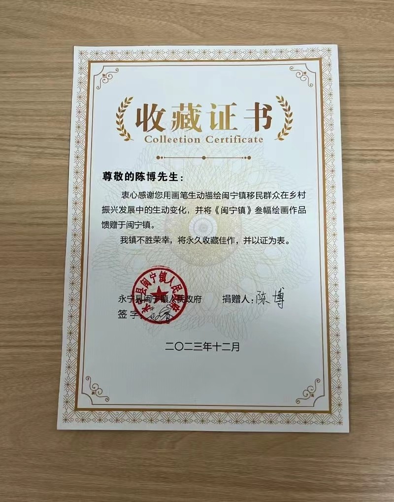 据介绍,2018至今,陈博深入闽宁镇田间地头、居民家中,共创作出《1999-闽宁镇》等7幅系列画作,生动展示着闽宁协作下闽宁镇移民辛勤劳作、建设生产的画面。“我们还曾多次组织学生们来到闽宁镇采风考察,引导学生关注现实,通过每个普通人身上的风貌变化反映社会环境的变化,创作出了一批反映闽宁镇人民精神风貌的画作。”陈博介绍,接下来,还将带领学生们,共同用手中的笔墨持续绘制闽宁发展新貌。
