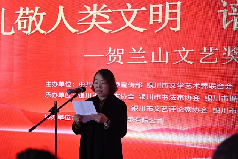 2024年1月10日上午,由中共银川市委宣传部、银川市文学艺术界联合会等单位联合举办“礼敬人类文明 谱写时代华章”——贺兰山文艺奖汇报展在银川美术馆开幕。在开幕式上,两位获奖代表:贺兰山文艺奖成就奖代表韩银梅、贺兰山文艺奖新星奖代表雷长林现场发表了获奖感言与大家分享。