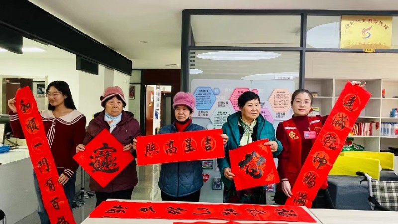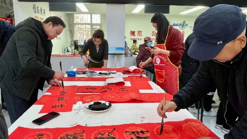 裁红纸、写春联,挥毫泼墨,一只只饱蘸祝福浓墨的毛笔,横撇竖捺间如春风拂面,浓浓的年味跃然纸上。书法家们书写对联和“福”字100余幅,把浓浓的新春祝福送到居民手中,大家对书法家们的作品赞不绝口,一边观摩,一边精心挑选自己喜爱的春联和“福”字,脸上洋溢着幸福的笑容,喜悦之情溢于言表。写春联、贴“福”字是中华民族流传千古的传统习俗,是迎接新年不可或缺的一道风景,每一副春联都寄托了人们对新一年的美好憧憬。
