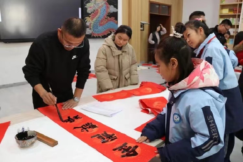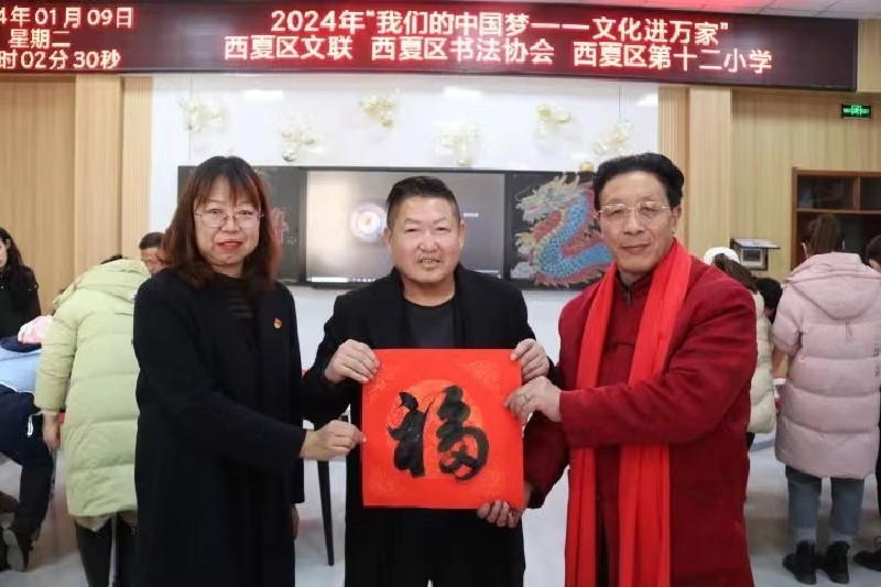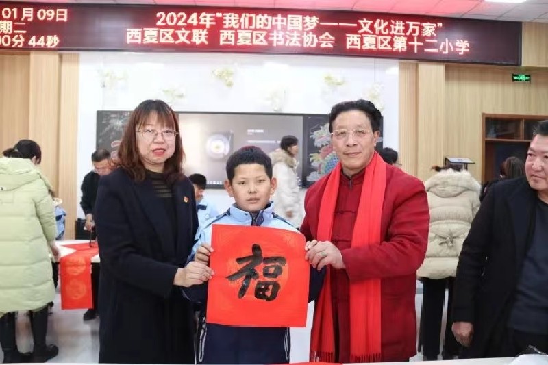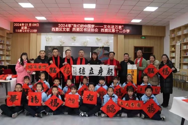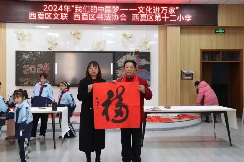 挥毫泼墨辞旧岁,春联福语迎新春!为营造欢乐祥和的节日氛围,弘扬中华优秀传统文化,2024年1月9日下午,西夏区文联、西夏区书法家协会共同在西夏区第十二小学开展2024“我们的中国梦——文化进万家”迎新春送福送春联文艺志愿服务活动,现场书写春联、福字,提前为该校师生们送上了新春的祝福。