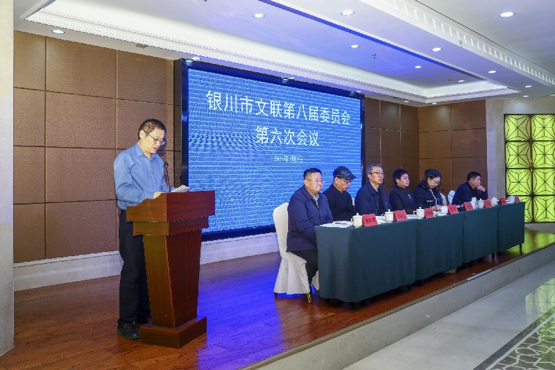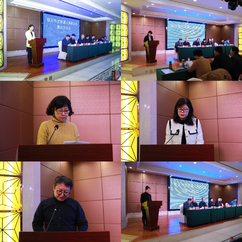 银川市文联秘书长秦斌同志宣读《关于银川市文联第八届委员会委员变更情况的通报》。因工作变动,孙燕、唐荣尧、曹德玲、张宏荣4位同志不再担任银川市文联第八届委员会委员,变更杨咏、郝春花、邓晴3位同志为银川市文联第八届委员会委员。