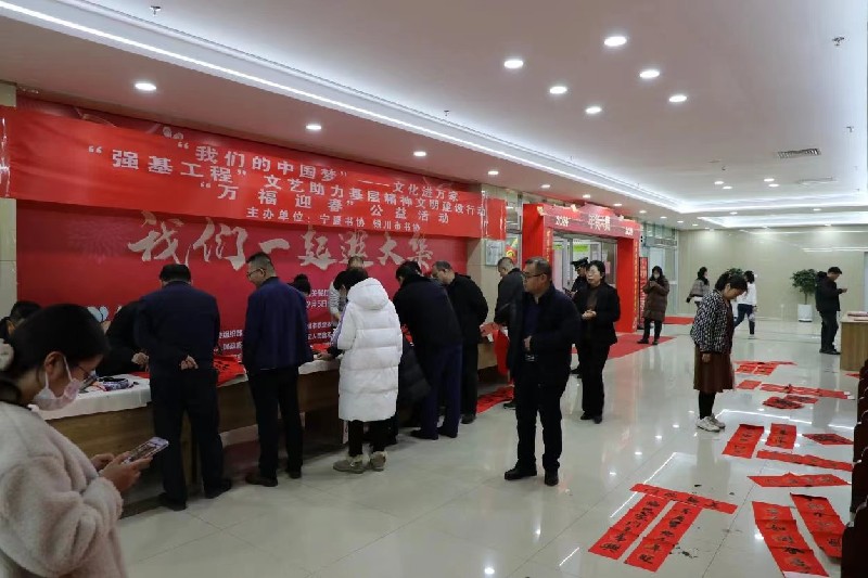 为深入实施中国文联“我们的中国梦——文化进万家”“强基工程”“文艺进万家 健康你我他”等文艺志愿服务项目要求,在甲辰龙年春节来临之际,银川市文联、银川市书法家协会组织50余位书法家,先后走进银川文化城、银川市公安局、银川监狱、银川市行政中心为群众、人民警察、机关干部现场书写赠送春联、福字3000余幅,弘扬中华书法艺术,挖掘中国传统节日——春节的节日文化内涵,营造春节浓厚节日氛围,满足群众的节日精神文化需求。