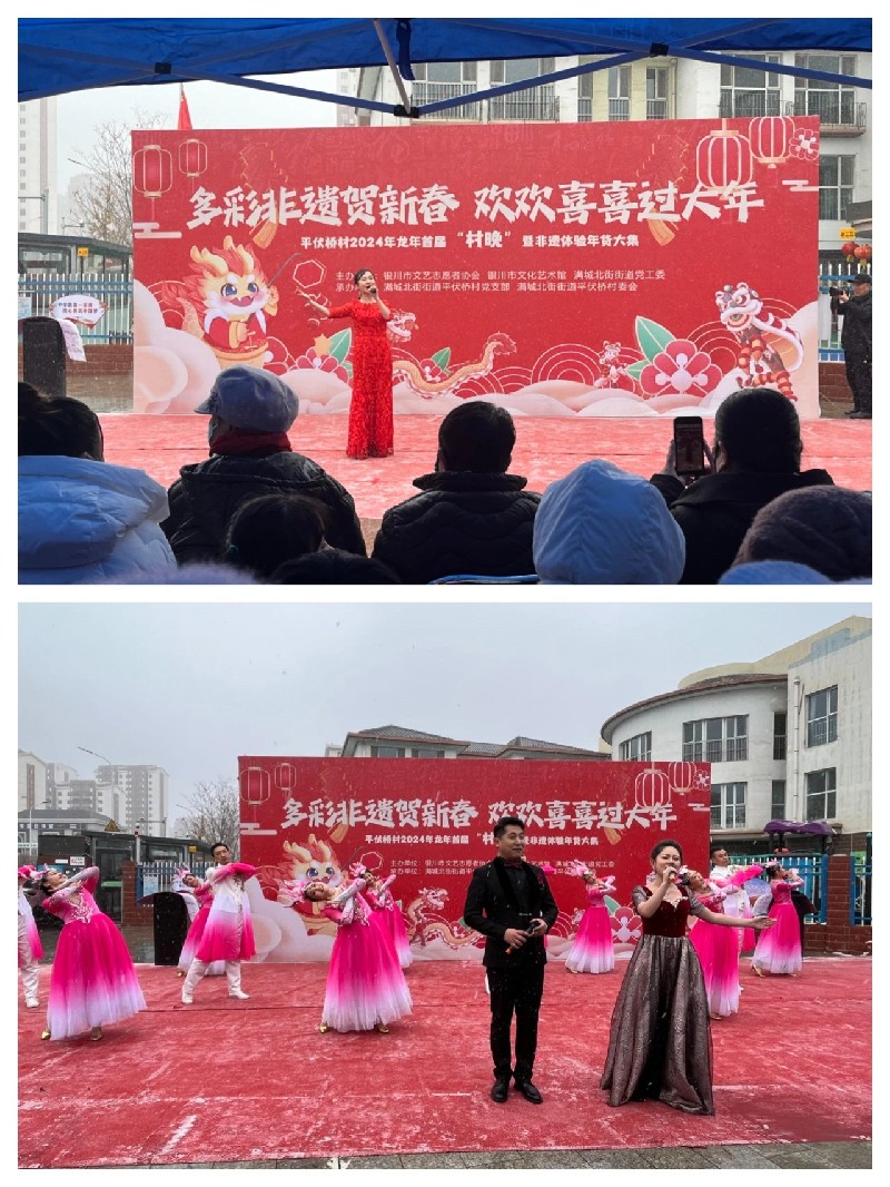 为深入学习宣传贯彻党的二十大精神、全面推进乡村文化振兴,进一步铸牢中华民族共同体意识。2月2日,由银川市文艺志愿者协会、银川市文化艺术馆、银川市金凤区满城北街街道党工委主办,银川市金凤区满城北街街道平伏桥村党支部、村委会承办的“多彩非遗贺新春 欢欢喜喜过大年”2024年龙年“村晚”精彩上演。