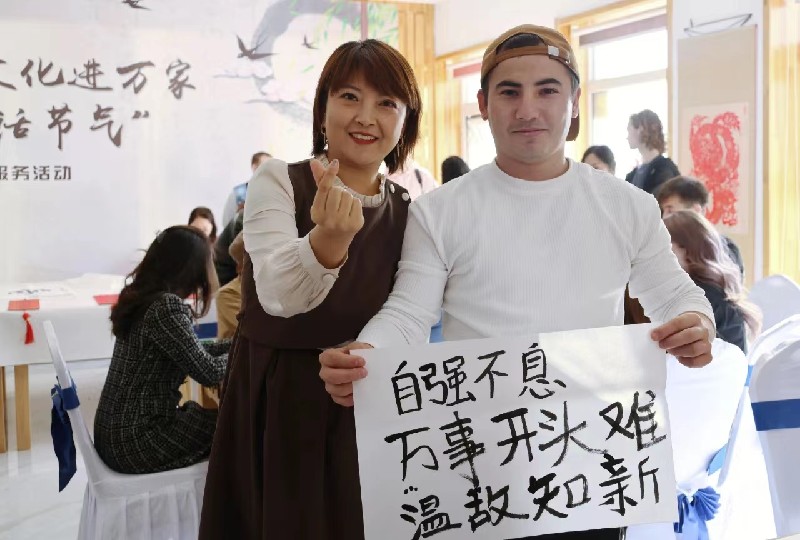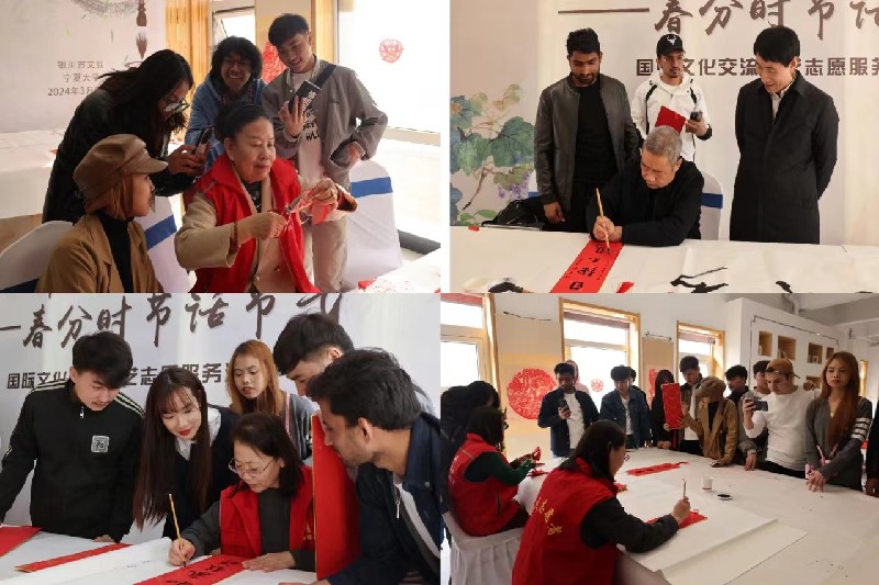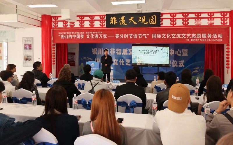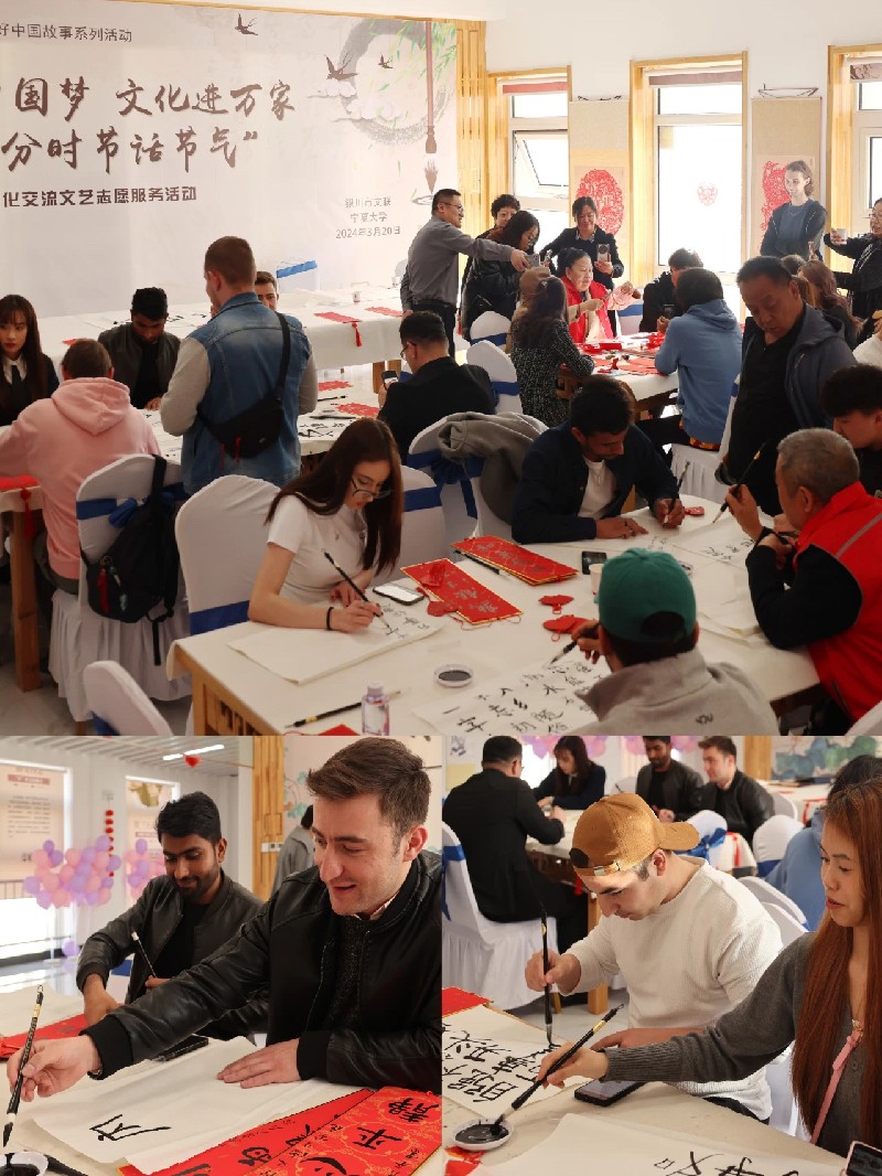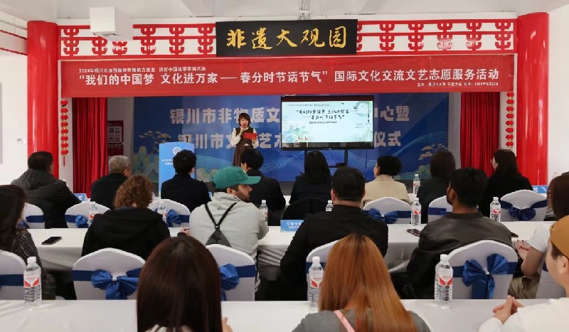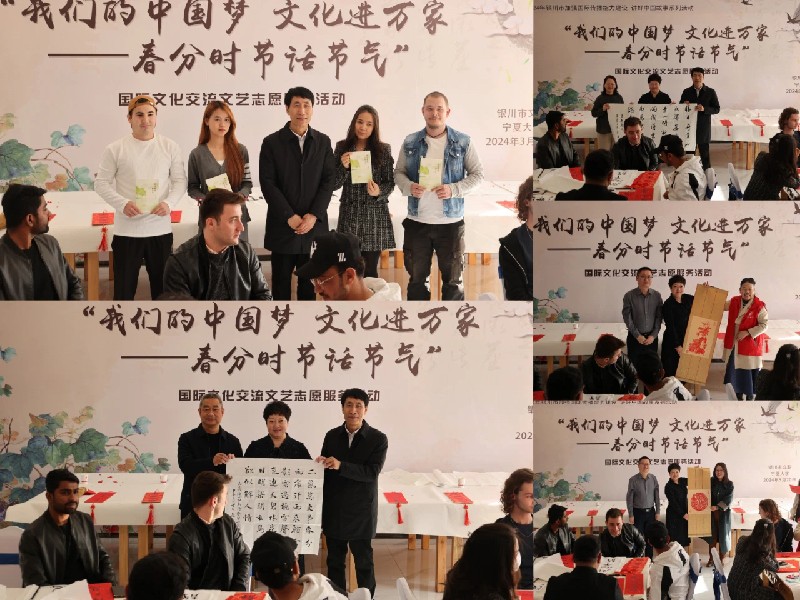 为了加强国际传播能力建设,讲好中国故事,让在银川工作生活的外国朋友,能更近距离地感受中国传统节气文化,增进与中国艺术家的交流互动,加深热爱银川、宣传银川的美好感情,3月20日,正值2024年春分时节,由银川市文联、宁夏大学联合在银川市文艺工作者之家——银川市非物质遗产文化展示中心,开展了“我们的中国梦 文化进万家——春分时节话节气”国际文化交流文艺志愿服务活动。