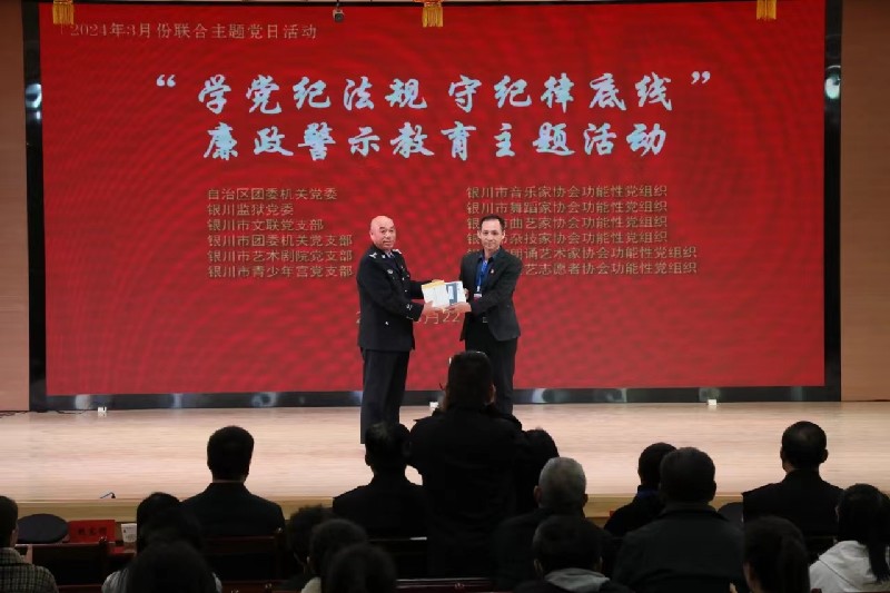 为深入推进党的自我革命,坚定不移推进全面从严治党向纵深发展,不断增强党员干部遵规守纪的自觉性坚定性,按照《关于在市直机关开展三月份“支部主题党日”活动的通知》要求,3月22日,由银川市文联党支部牵头,联合自治区团委机关党委、银川市团委机关党支部、银川监狱党委、银川艺术剧院党支部、银川市青少年宫党支部、银川市文艺家协会功能型党组织共同走进银川监狱,开展“学党纪法规 守纪律底线”主题党日活动。