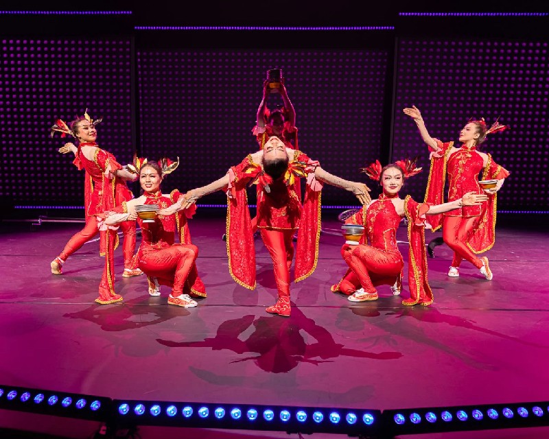 《高车踢碗》结合了大气的中国鼓乐,以凤凰为原型设计服装,营造出浓郁的中国红主题,为这一传统节目注入了新的活力。高车高达2.5米,巨大的车身给演员们带来了极大的挑战,但在重重困难下,演员和编导老师不畏艰苦,在队形编排上大胆创新,采用无缝衔接的方式,使队形的转换自然流畅、绵延不断。这种巧妙的设计,不仅增加了节目的观赏性,更展现了团队的默契与协作精神。