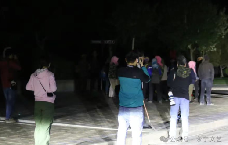 创作小组在永宁县闽宁镇原隆村拍摄凌晨4点早起务工的农民群众