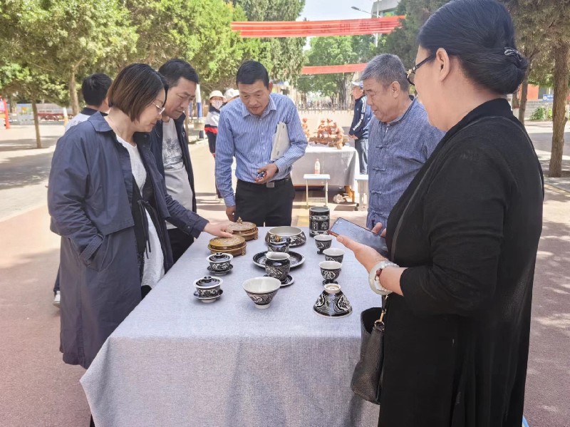 在陶瓷展台前,学生们手捧精致的黑白瓷爱不释手。宁夏回族自治区非遗陶瓷项目的传承人李五奎,从选料到胎体制作、上釉、纹样剔刻、烧制等工序,耐心地向孩子们介绍陶瓷历史背景及制瓷工艺等。通过实物观赏和李五奎的悉心讲解,学生们对陶瓷文化有了进一步的理解和认识,感受到了古老陶瓷艺术的独特魅力。