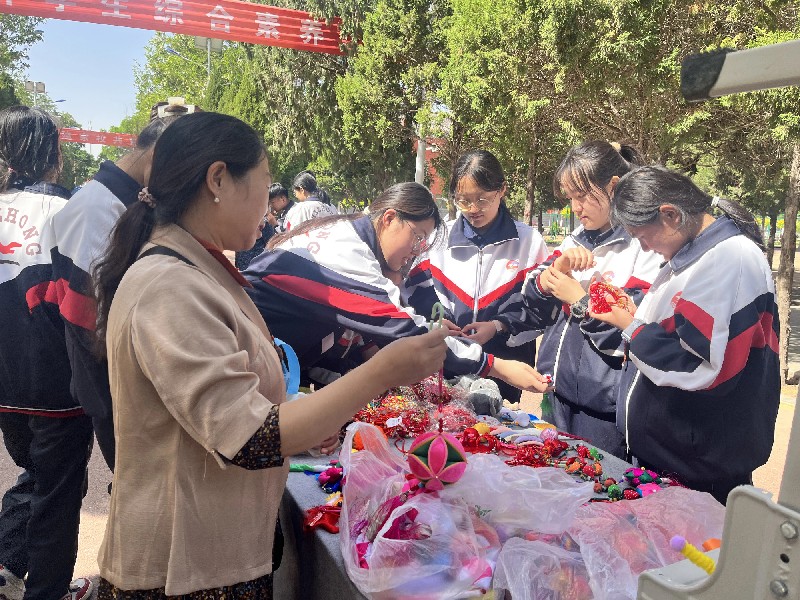 以布为纸、以线当墨、以针作笔,用细密的针脚保留民间记忆,传承珍贵手工艺,诠释色彩斑斓的人生。张颖珍的绣品展台前,展示的作品有肚兜、虎头鞋,有小巧别致的香囊、二十四节气刺绣包……每一件绣品都是她的心血之作,也凝聚着民间手工艺人浓浓的工匠精神,学生们拿起编绳手链说:“老师我们初中美术课也上过编绳这一课,只是没有老师的种类多,展台上花花绿绿的香包及编绳手串让孩子们爱不释手。
