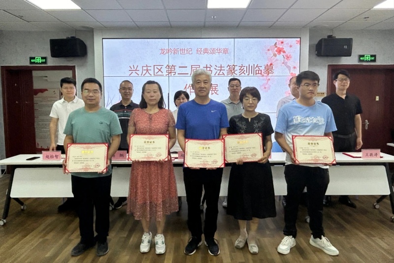 2024年6月14日,兴庆区第二届书法篆刻临摹展在兴庆区新时代文明实践中心四楼综合展厅开幕。此次展览共收到书法篆刻作品180余件,作品涵盖了各书体门类以及篆刻,取法上至商周,下迄清末,钟鼎、碑版、刻石、法帖均有涉猎。经过严格评审,59位作者的近百件临创作品参加了展览。开幕式为获得一、二、三等奖及优秀奖的16位作者颁发了证书及奖金。