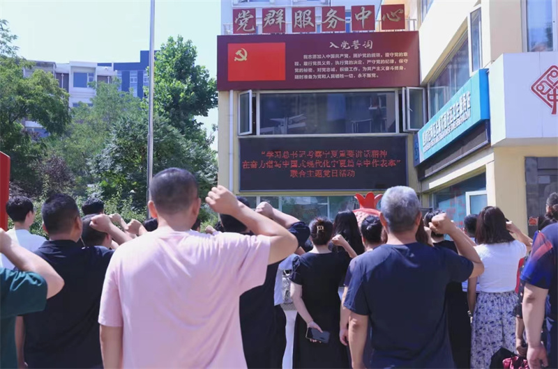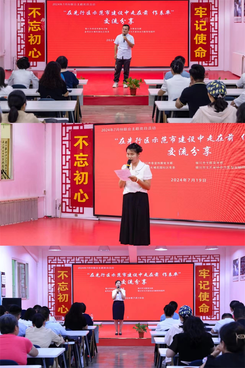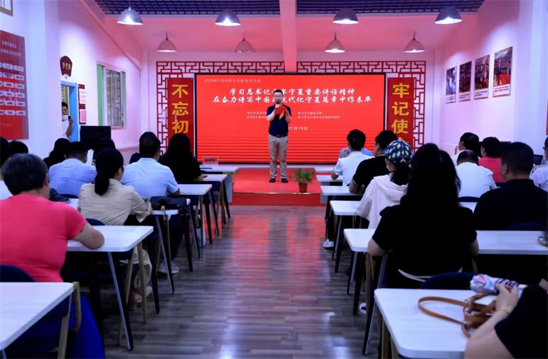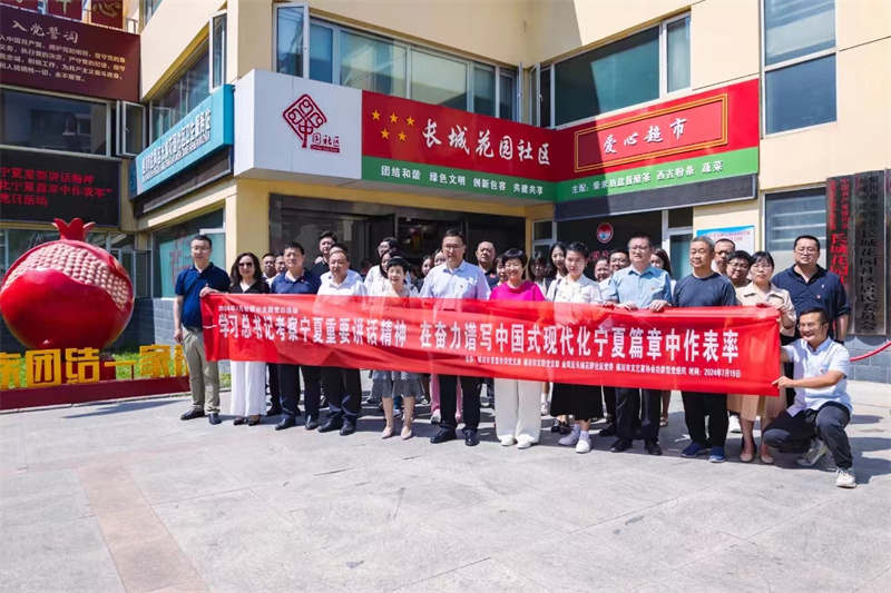 为热烈庆祝中国共产党成立103周年,深入学习贯彻习近平总书记考察宁夏重要讲话精神,引导广大党员干部不忘初心、牢记使命,开拓进取、攻坚克难,在奋力谱写中国式现代化宁夏篇章中展现首府担当、彰显首府作为、作出首府贡献,按照银川市直机关工委开展七月份“支部主题党日”活动的要求,2024年7月19日,银川市委宣传部党支部、银川市文联党支部、金凤区长城花园社区党委、银川市文艺家协会功能型党组织共同走进金凤区长城花园社区开展了“学习总书记考察宁夏重要讲话精神,在奋力谱写中国式现代化宁夏篇章中作表率”主题党日活动。