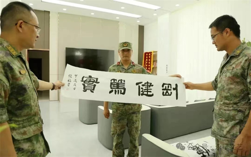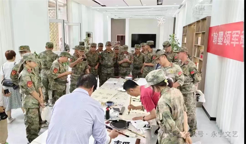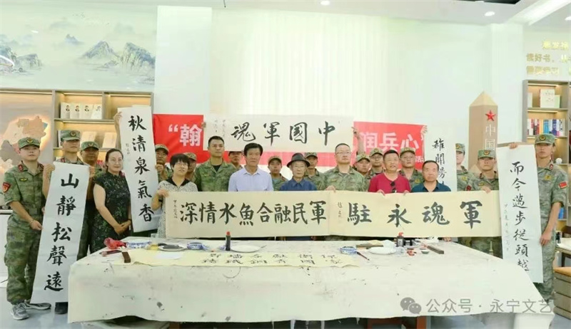 活动当日,永宁县书法家协会的四位书法家现场挥毫泼墨,书写了“军魂永驻”“军民鱼水情深”等内容的书法作品,并与战士们互动交流,分享书法创作的技巧与经验,呈现了一幅军民鱼水情深的温暖画面。