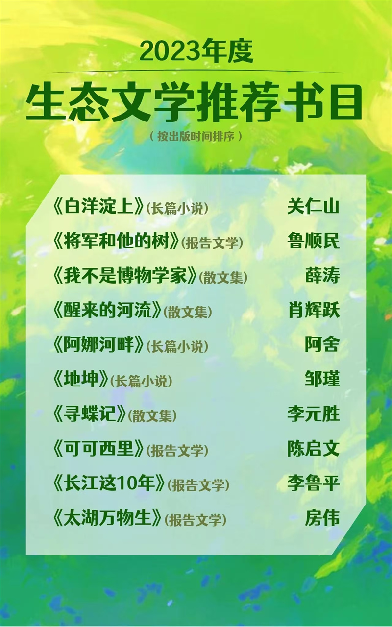 作为培育弘扬生态文化、传播生态价值理念的重要载体,生态文学得到越来越多作家的关注和投入,如今已发展成为具有独特价值的文学门类。经中国作协团体会员单位、省级生态环境厅(局)、出版社、相关高校研究机构推荐,评审专家评审,推选出了十部作品作为2023年度生态文学推荐书目。