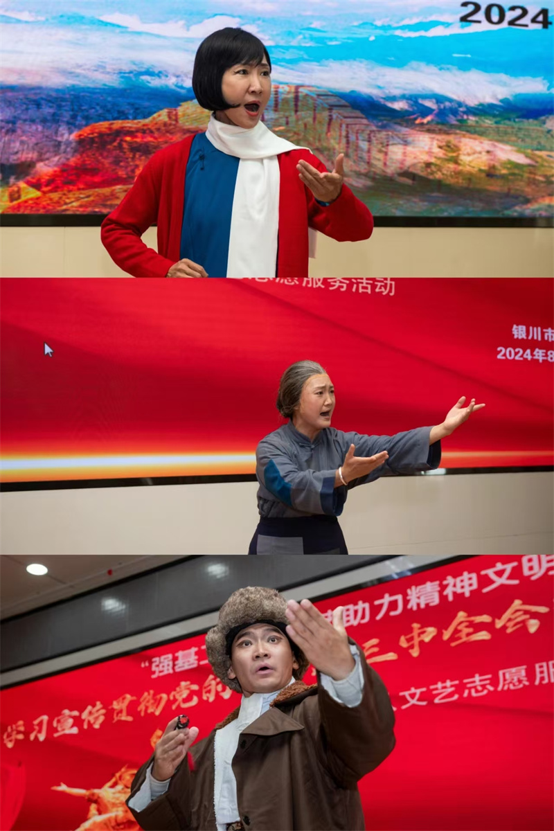 宁夏京剧院国家一级演员王娜、优秀青年演员王蒙、马智,银川市戏剧家协会国家一级演员李小荣、国家二级演员鱼亮、李梦聪分别为现场部队官兵带来了京剧《江姐》《红灯记》《智取威虎山》选段和秦腔《洪湖赤卫队》《血泪仇》眉户剧《大家喜欢》的精彩选段。