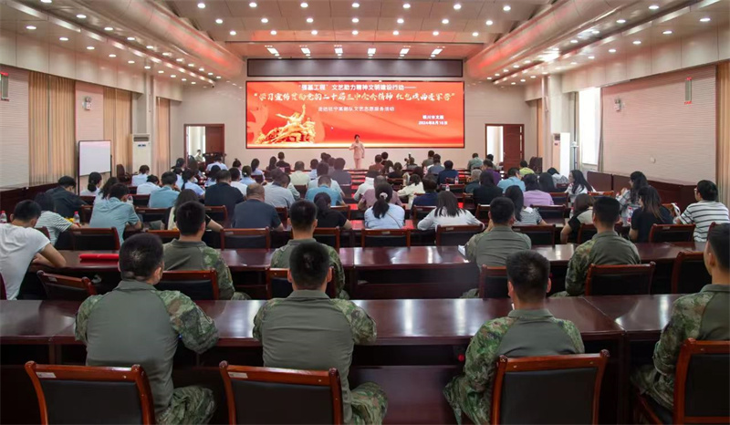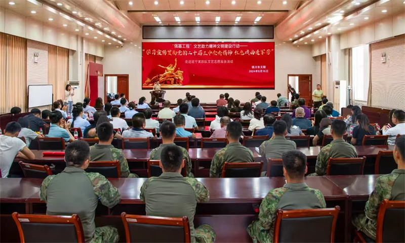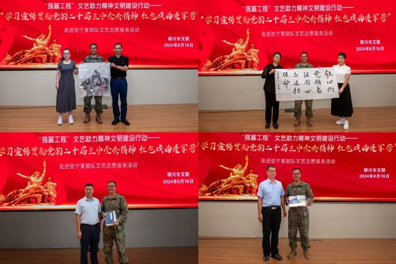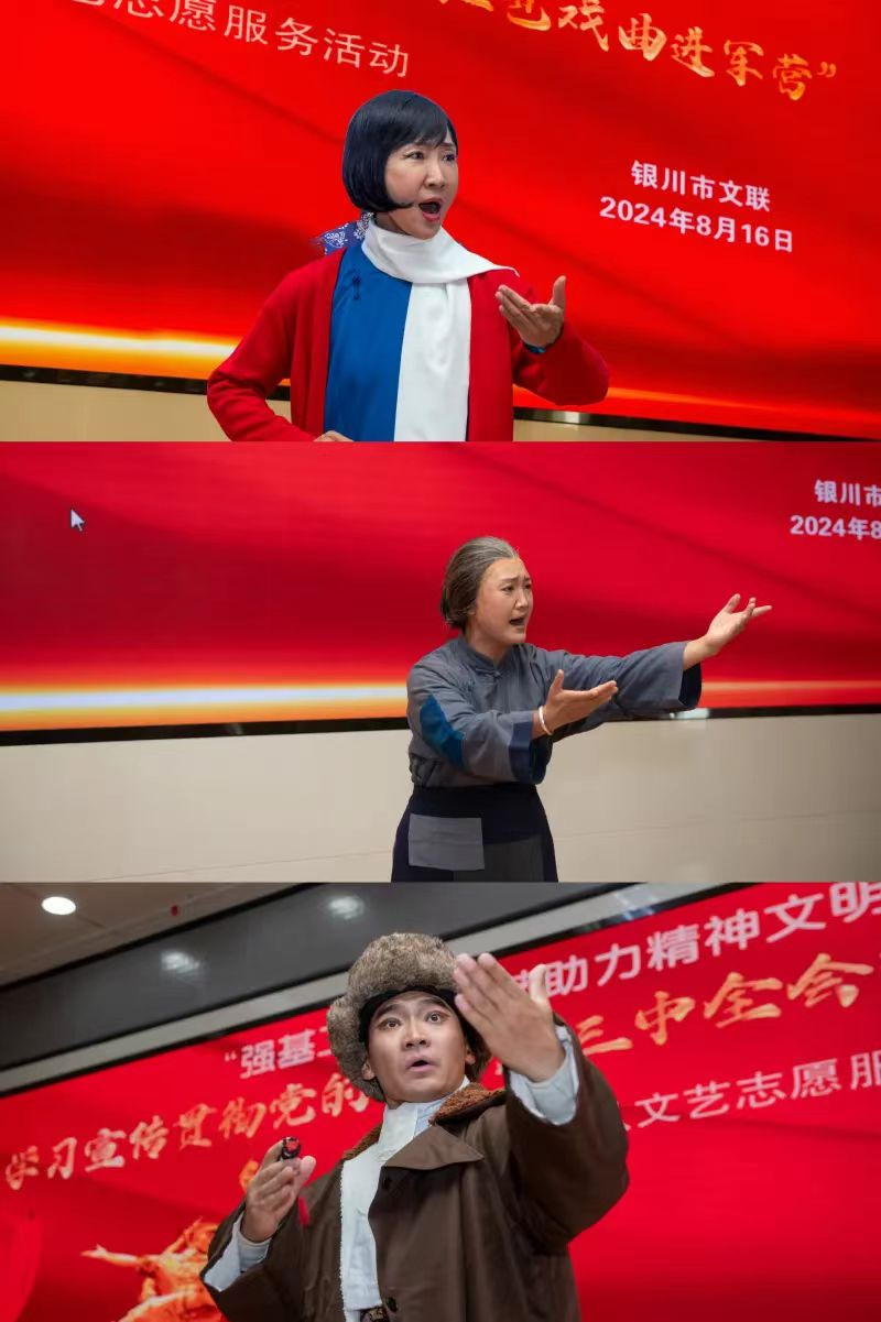 为深入学习贯彻党的二十届三中全会精神、习近平总书记考察宁夏重要讲话精神、习近平总书记关于双拥工作重要论述精神等,按照中国文联“强基工程”文艺助力基层精神文明建设行动部署要求,银川市文联联合银川市退役军人事务局、宁夏京剧院、银川市戏剧家协会走进驻宁某部队,开展“学习宣传贯彻党的二十届三中全会精神 红色戏曲进军营”文艺志愿活动,为广大人民子弟兵献上了一场丰富多彩的“文化盛宴”。