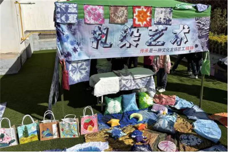 为增添展览的趣味性与参与度,此次展览还为群众增设了新鲜有趣的互动环节——漆扇与扎染体验课程。以漆为笔、以水为画,绘制出如云雾缥缈、如山川壮丽的图案;以布为纸、以绳线为笔,让一抹“民族蓝”绽放在各式织物上。群众在书画展的邂逅中收获属于自己的非遗礼物,享受艺术的乐趣。