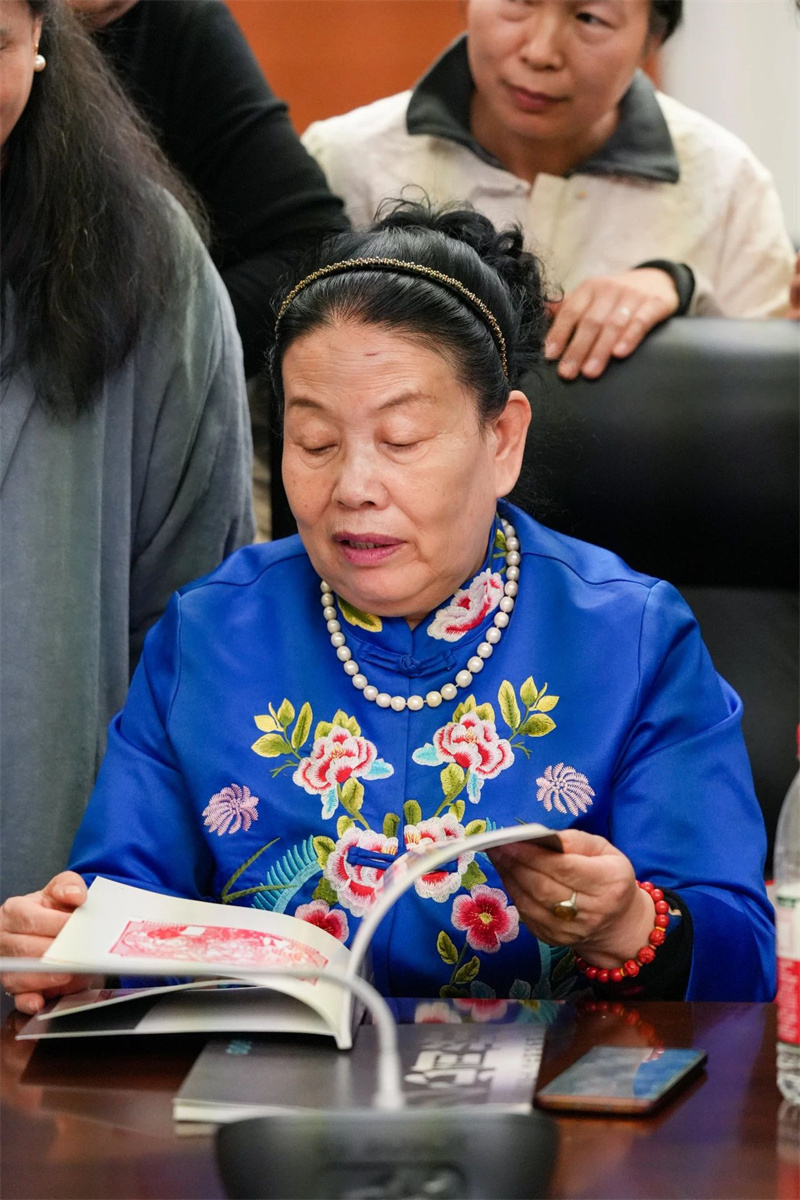 伏兆娥老师精彩亮相,助力非遗传承活动当天,伏兆娥老师身着传统服饰,精神饱满地出席了开幕会。她与其他嘉宾一同见证了这场剪纸艺术盛宴的启动,为活动增添了浓厚的文化氛围。在随后的座谈会上,伏兆娥老师发表了重要讲话。她分享了自己多年来从事剪纸艺术创作的宝贵经验和深刻心得,并对非遗文化的传承工作提出了独到见解和建议。她强调,传承非遗文化是全社会的共同责任,需要政府、学校、家庭以及社会各界人士的共同努力和关注支持。伏兆娥老师的讲话赢得了参会者们的热烈掌声和高度赞誉,展现了她在非遗文化传承领域的深厚造诣和崇高地位。