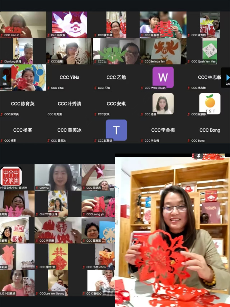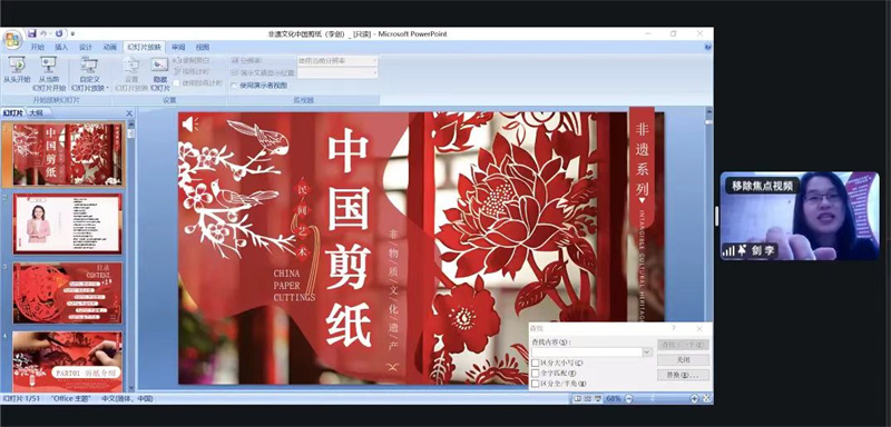 在直播中,李剑老师以探寻剪纸艺术为主题,通过“传统剪纸+文创+教育+科技+动漫”的创新模式,向马来西亚的线上同学们展示了剪纸艺术的丰富性和现代传承。第一节课,李剑老师讲中国剪纸的内容、剪纸的意义、中国剪纸传统文化的魅力和沉淀。