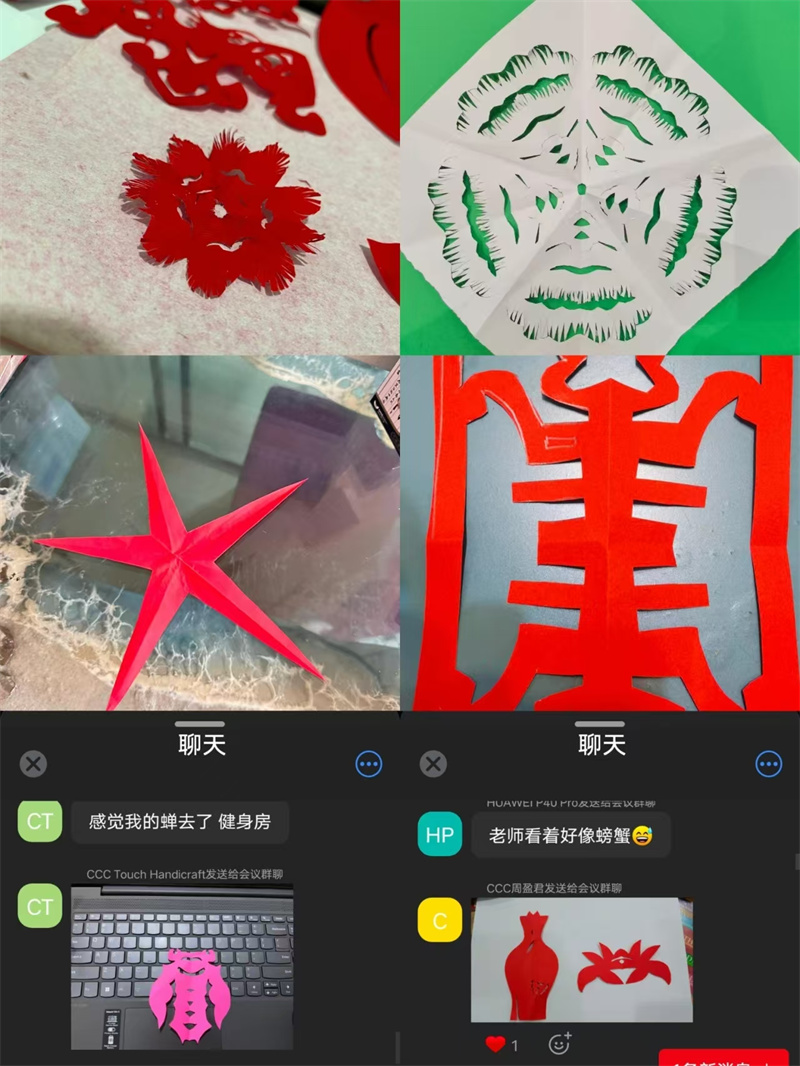 随后,李剑老师带领大家一起开启了自由创作时间。同学们有的剪出了五星红旗的图案,表达了对祖国的热爱;有的则在学习剪窗花的过程中,感受到了中国传统文化的魅力。他们纷纷表示,此次直播学习剪纸,不仅让他们领略到了非物质文化的宝贵,还学到了如何用剪纸创作出传统的窗花等作品,这让他们对中国传统文化有了更深入的了解和认识,课后很多老师学生们表示,这种以直播形式传播传统文化,需要我们更多的助力。
