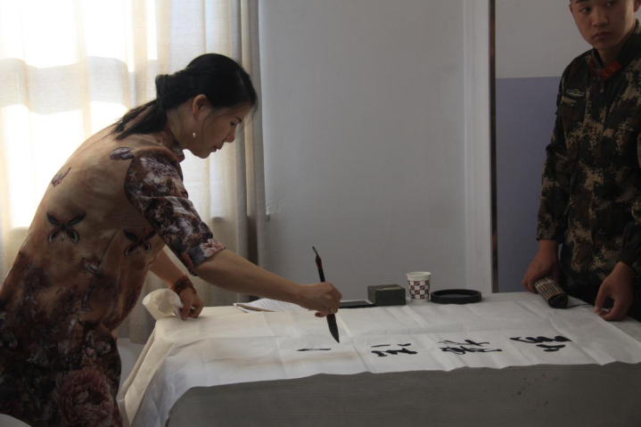 活动现场,书法家为行政中心武警支队官兵书写了普法宣传内容的书法作品。文联干部向武警支队的官兵们发放《中华人民共和国宪法》手册,并赠送《黄河文学》杂志、《家风家训故事选编》、银川文艺界内刊。