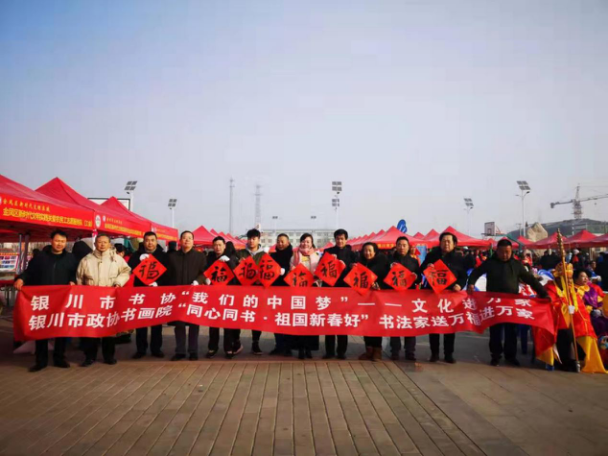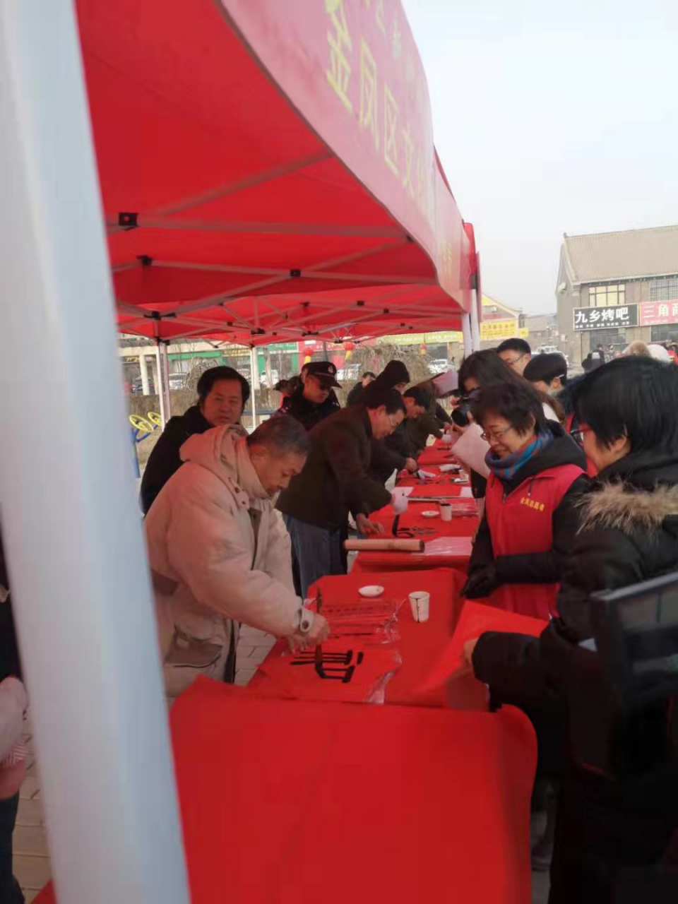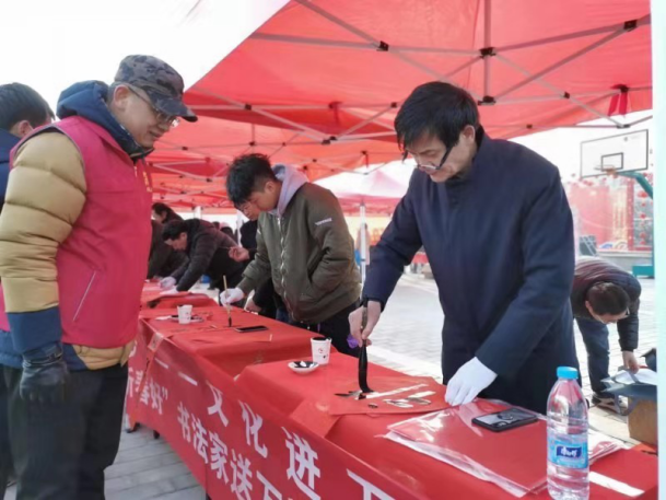 活动当天,金凤区良田镇新时代文明实践广场人头攒动,银川市书协骨干会员组成文艺志愿小分队,在严寒中为村民们现场写春联、送福字、剪纸、拍摄全家福。