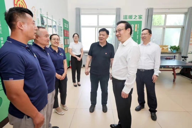 5月21日,梁言顺在宁夏兴唐米业集团公司“匠心家园”,调研企业民族团结文化培育情况。