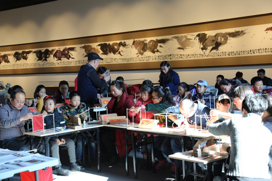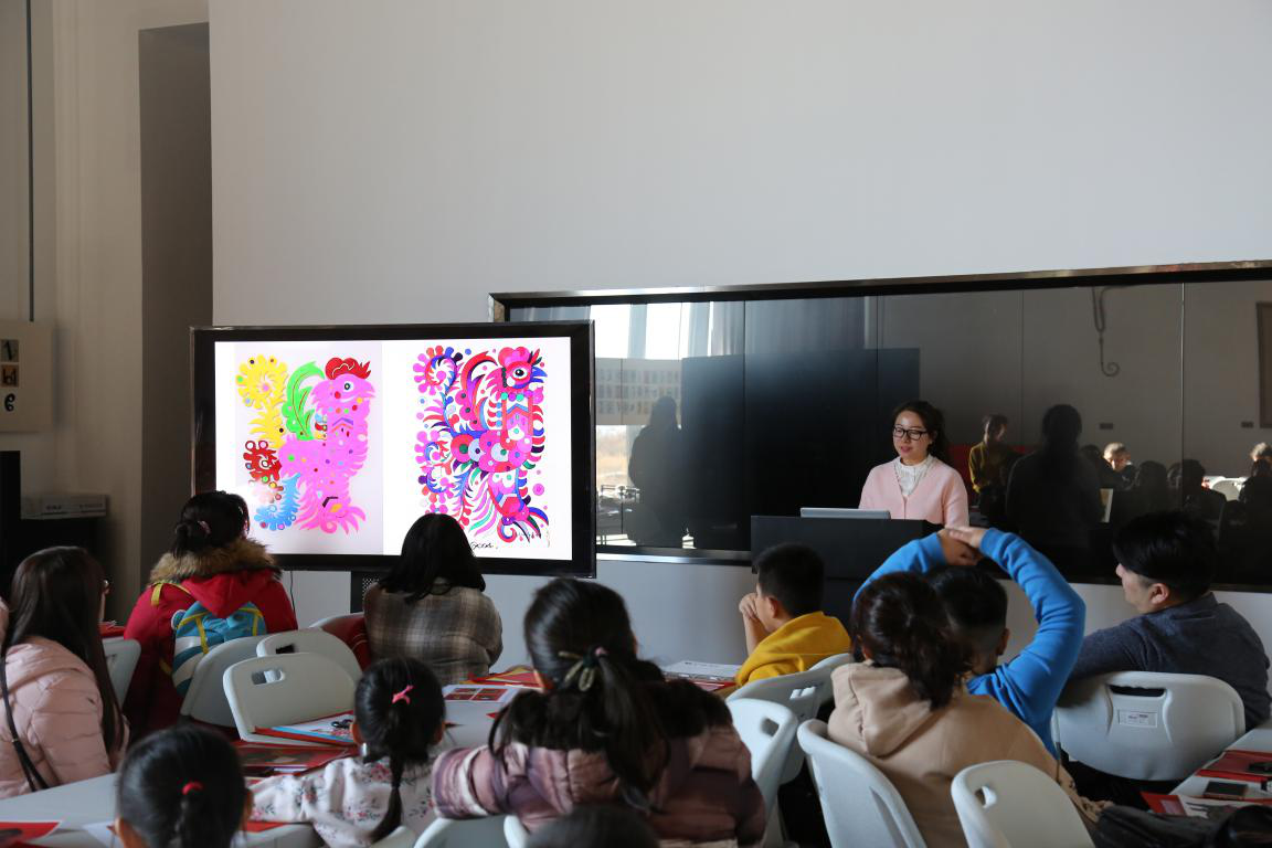 艺术馆特意邀请到宁夏隆德齐家剪纸传承人齐立娟、陈晓颖二位老师来馆讲授关于剪纸的知识和技巧,并现场结合韩美林“新年新作”,带着小朋友们一起,将韩美林先生的水墨动物用剪纸艺术表现出来。