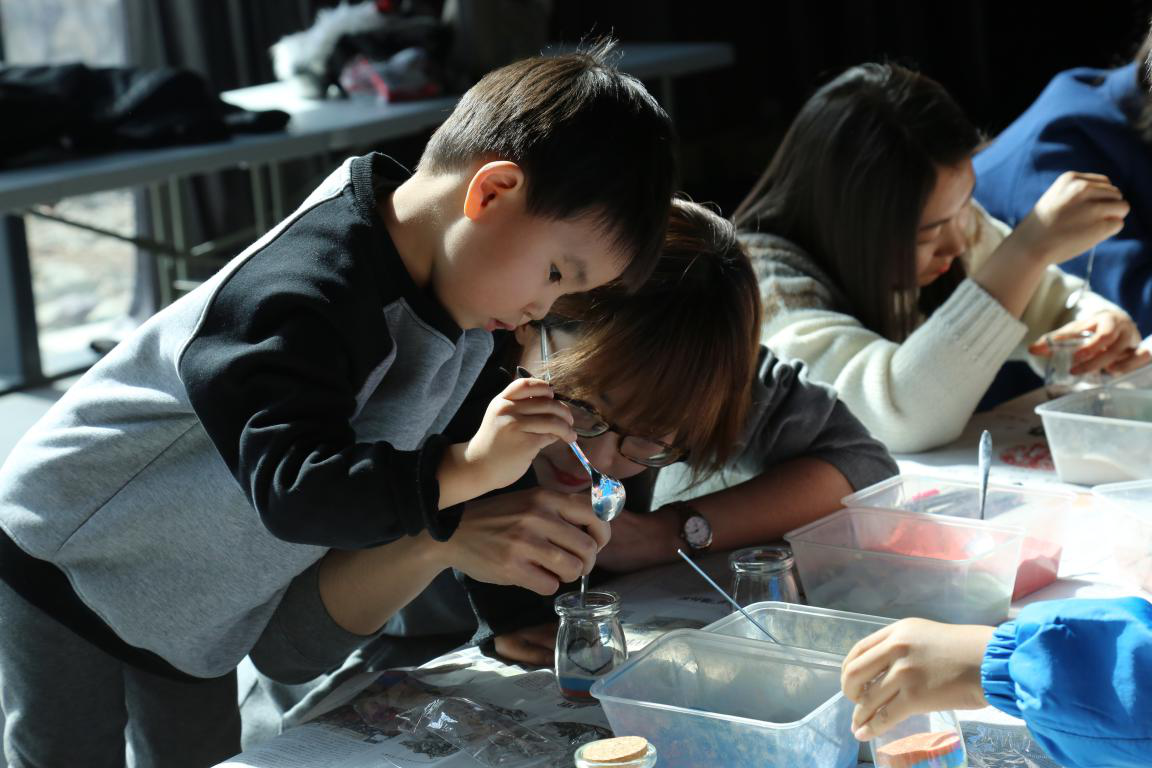 艺术馆邀请沙画老师陈逸飞、沙画瓶老师陈浩强、张腾做客艺术馆,量身定制韩美林艺术沙画表演,同时指导大家做沙画瓶,带大家走进“沙艺”的海洋。