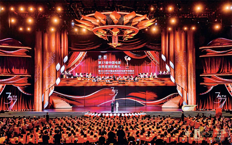 2024年11月16日晚,第37届中国电影金鸡奖颁奖典礼暨2024年中国金鸡百花电影节闭幕式在福建厦门举行。图为活动现场。中国文联供图