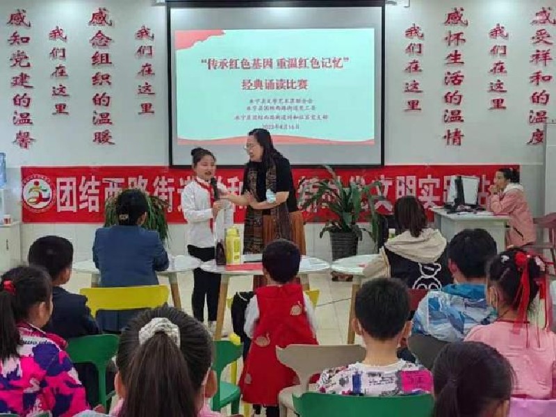 4月16日,永宁县文联在永宁县团结西路街道祥和社区新时代文明实践站开展了“缅怀革命先烈 传承红色基因”红色经典诵读比赛。十七位小选手们紧扣诵读主题,伴着婉转的旋律,和着铿锵有力的节拍,声情并茂地诵读了《七律·长征》《耀眼的中国红》《我骄傲,我是中国娃》等红色经典。此次活动旨在培养孩子们对中国共产党、对伟大祖国的感激和热爱之情,进一步引导青少年传承红色基因,赓续红色血脉。