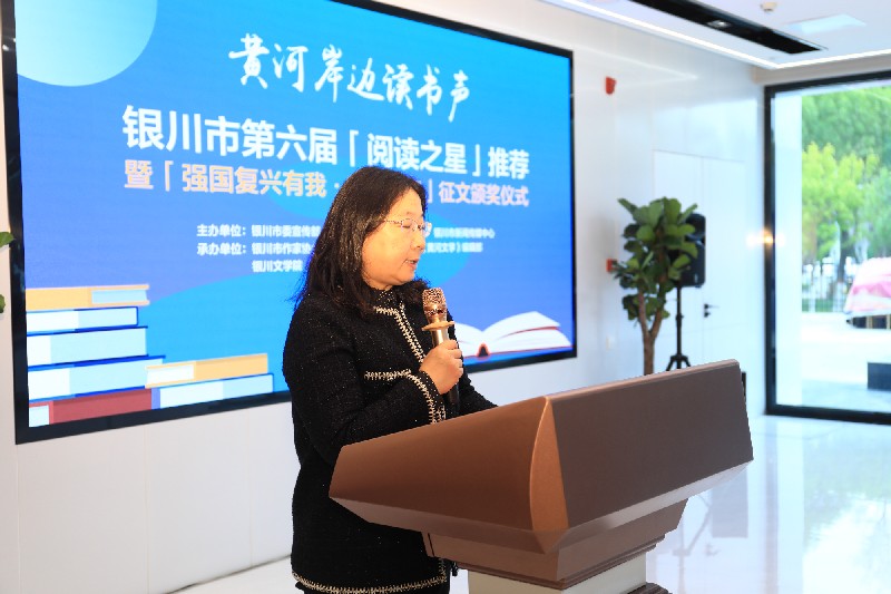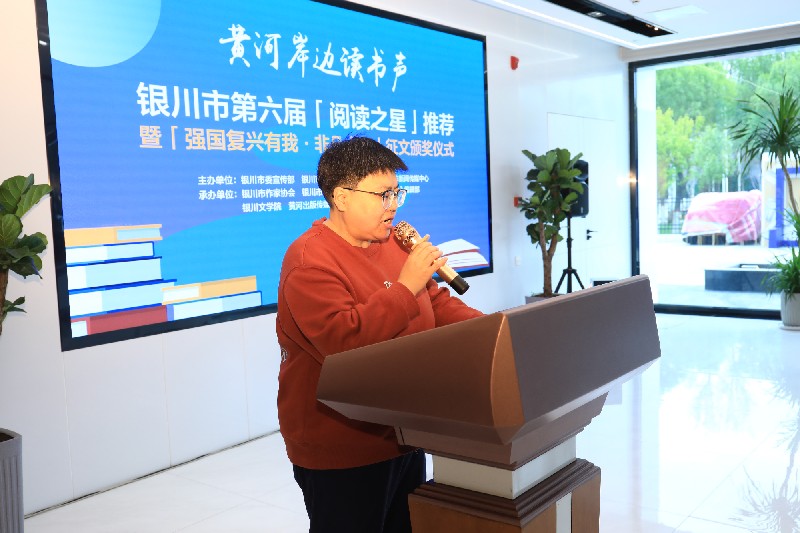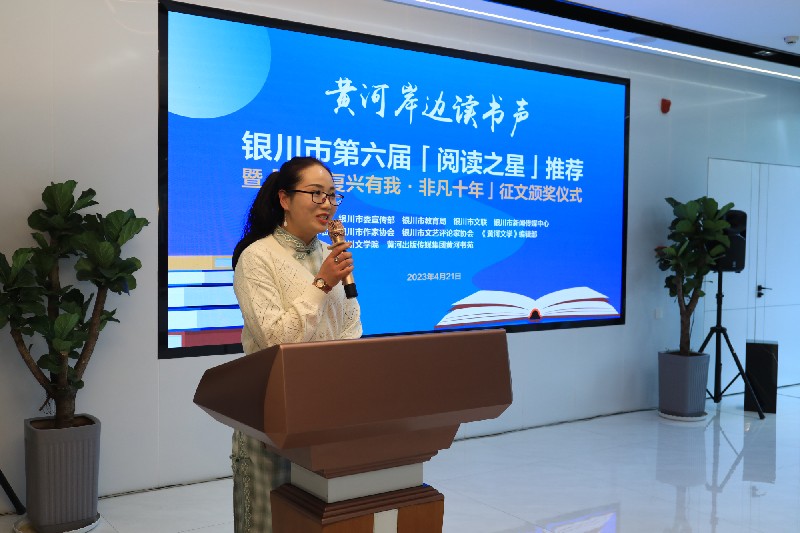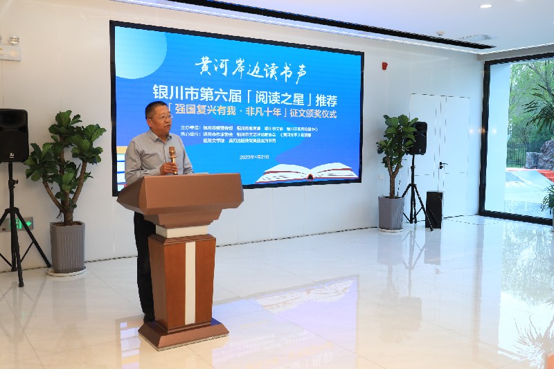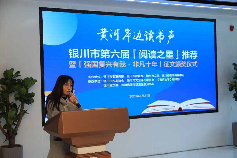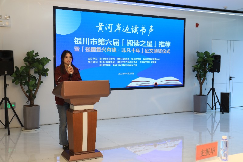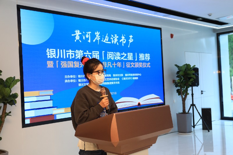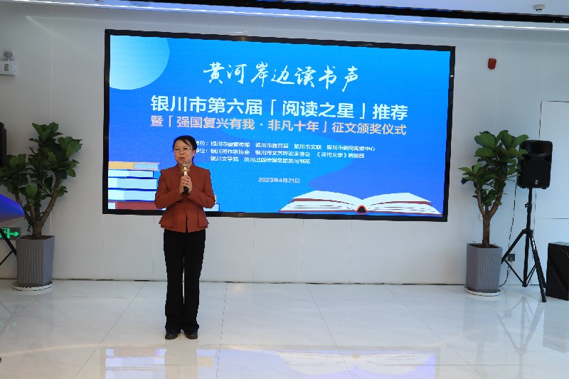 4月21日下午,由银川市委宣传部、银川市教育局、银川市文学艺术界联合会、银川市新闻传媒中心联合主办的银川市第六届“书香银川·阅读之星”推荐启动仪式暨“强国复兴有我·非凡十年”主题征文活动颁奖在黄河书苑举行。